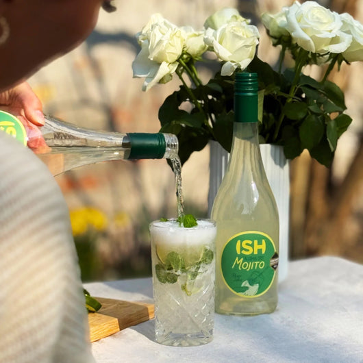 El ISH Mojito se puede disfrutar directamente del envase frío o en un vaso alto con lima fresca y menta. ¿Quieres añadir un ligero zumbido? Simplemente agregue un chorrito de ron blanco a su ISH Mojito. El resultado es un cóctel enérgico, significativamente menos alcohólico que el mojito tradicional.
