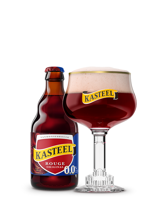 El vínculo con la Kasteel Rouge original es innegable: una cerveza especial de color rubí, con una espuma generosa y una paleta aromática reconocible al instante. Su olor ligeramente dulce, con notas de flor de saúco, anuncia una cerveza especial, refrescante, elaborada sin alcohol y llena de sabores.