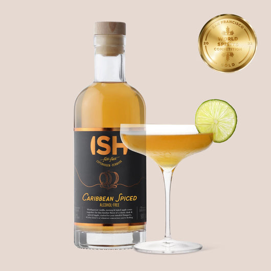 ISH Caribbean Spiced Spirit es una bebida sin alcohol galardonada con múltiples premios. Basado en una bebida espirituosa desalcoholizada, originaria de las islas caribeñas de Jamaica y Martinica, nos esforzamos por ofrecer la experiencia más auténtica posible al bebedor exigente. El Caribbean Spiced Spirit de ISH no debe disfrutarse solo, sino más bien para agregar especias a sus cócteles, pero sin alcohol. También puedes usarlo con otros licores, permitiéndote reducir el contenido de alcohol de tus cócteles.