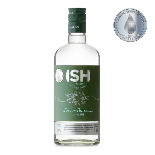 ISH London Botanical Spirit es una bebida espirituosa sin alcohol ganadora de múltiples premios. Elaborada con enebro, cilantro, cáscara de naranja amarga y pimienta negra, nos esforzamos por ofrecer la experiencia de bebida sin alcohol más auténtica para los bebedores más exigentes.
