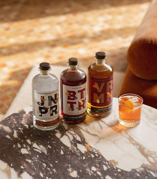 Consejos de degustación: en cócteles, o simplemente JNPR n°1 con tónica, BTTR n°1 y VRMH n°1 con agua con gas.