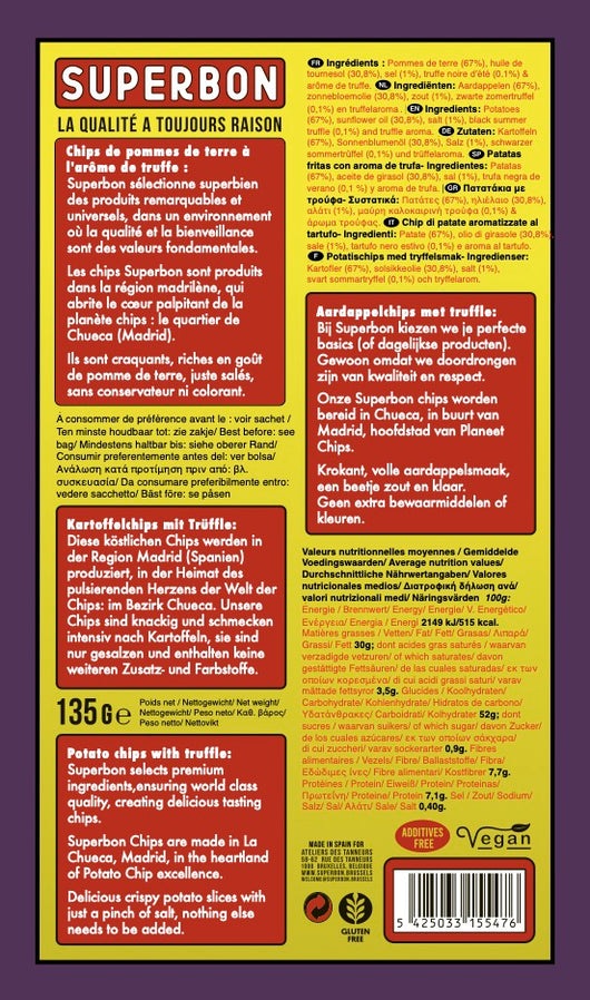 Déjese transportar al mundo de Superbon, una empresa creada por Philippe Emanuelli, un chef estrella francés.Superbon reinventa los Truffle Crisps poniendo la trufa negra de verano deshidratada en el centro de...
