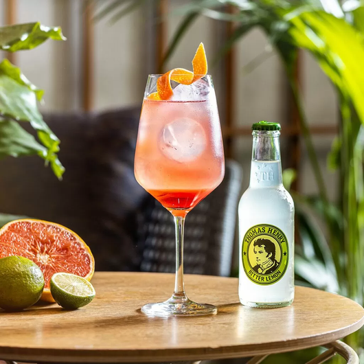 Un placer agridulce a base de Campari y Thomas Henry Limón Amargo. Tan refrescante como una agradable brisa y estimulante gracias al equilibrio entre dulzor y acidez. Grazie y saludo.