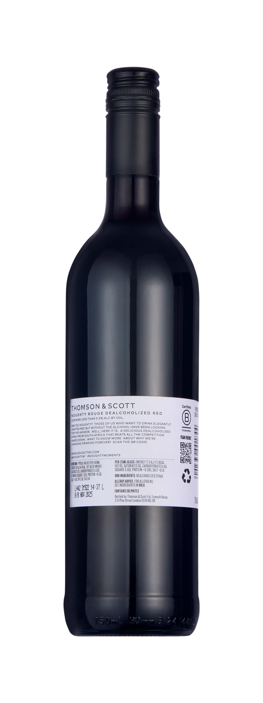 Vino tinto Noughty 0,5% sin alcohol ha sido desalcoholizado a menos de 0,5% de alcohol, conservando al mismo tiempo el rico sabor de esta botella bellamente elaborada.