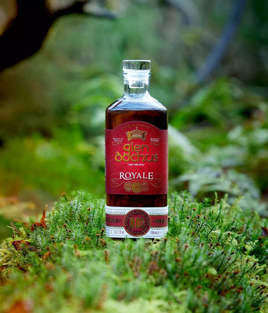Glen Dochus Royale Blend ofrece una experiencia rica y cálida, combinando notas de roble y vainilla con sutiles toques de especias y miel.